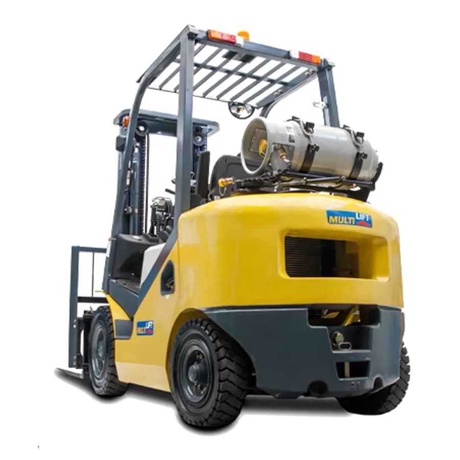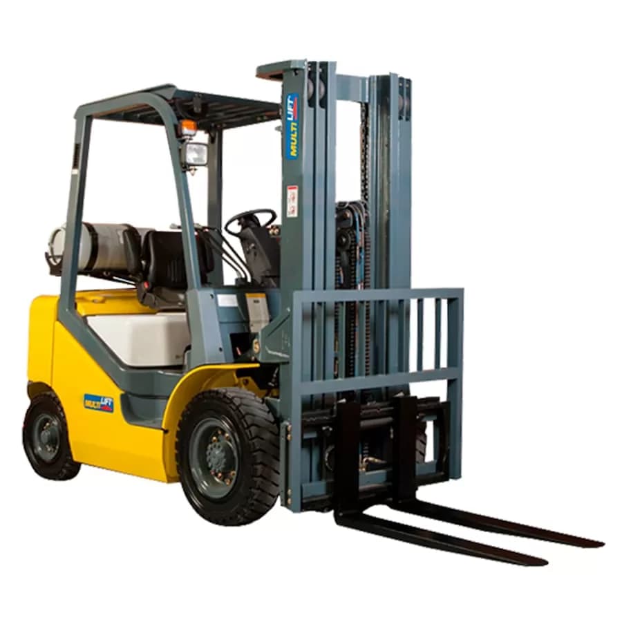 Montacargas de combustión interna con capacidad de 3.5 toneladas. Disponible para alquiler mensual o semanal en industria y almacenes.